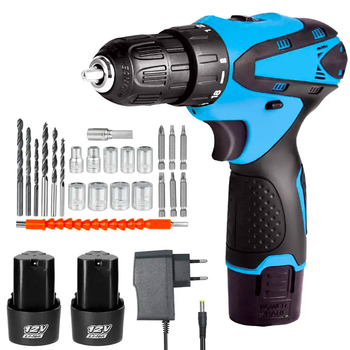 Акумуляторний шуруповерт з 2 акумуляторами 12V, W12 + набір біт / Шуруповерт-дриль з насадками в кейсі