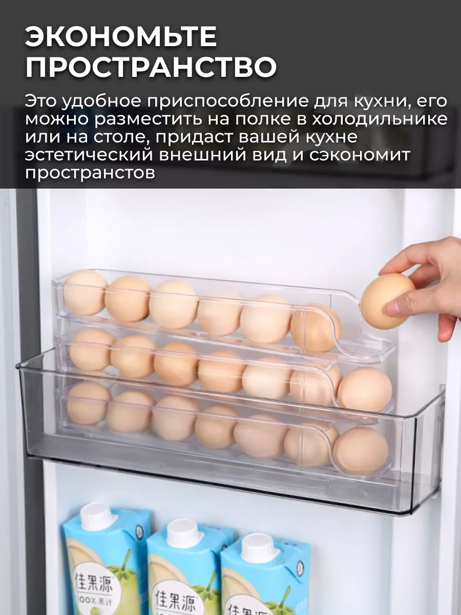 Контейнер оснащений системою автоматичної подачі: при витягуванні одного яйця наступне плавно скочується вперед. Напівприкрита конструкція з вентиляційними отворами сприяє збереженню свіжості яєць та запобігає появі неприємних запахів.