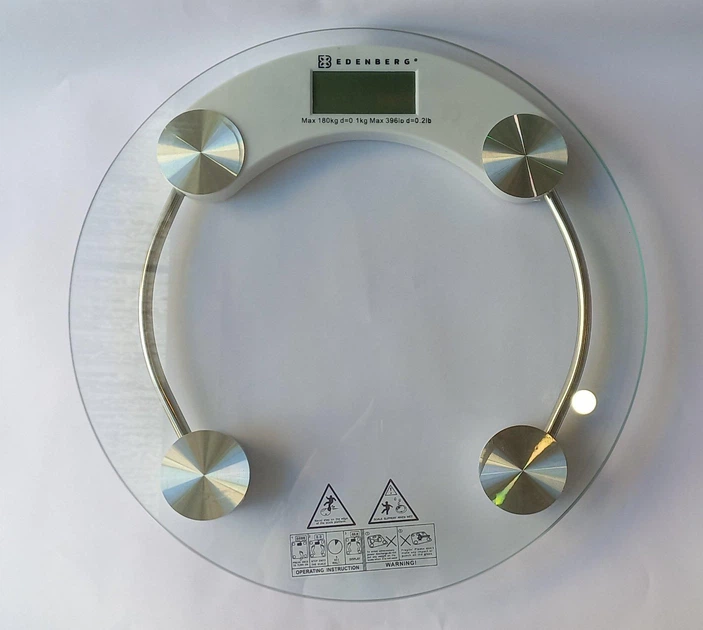 ЗнижкиМатеріал: загартоване скло; Функції: вимірювання ваги; Колір: прозорий; Форма: кругла; Розмір пакування: 34см x 34см x 5см Максимальна вага: 180 кг; Джерело живлення: 1 батарейка монетка в комплекті