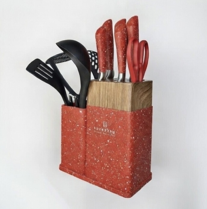Набір кухонних ножів Edenberg EB-11098 12 предметів на підставці, червоний